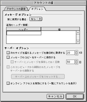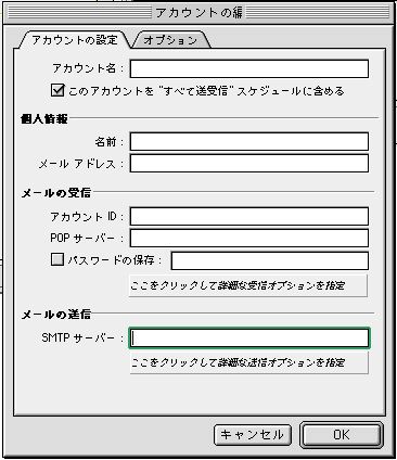 例:受信メール(POP,IMAP)サーバー:potato.hokkai.net